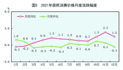 全年居民消費(fèi)價(jià)格比上年上漲0.9%。工業(yè)生產(chǎn)者出廠價(jià)格上漲8.1%。工業(yè)生產(chǎn)者購(gòu)進(jìn)價(jià)格上漲11.0%。農(nóng)產(chǎn)品生產(chǎn)者價(jià)格[12]下降2.2%。12月份,70個(gè)大中城市中,新建商品住宅銷售價(jià)格同比上漲的城市個(gè)數(shù)為53個(gè),下降的為17個(gè);二手住宅銷售價(jià)格同比上漲的城市個(gè)數(shù)為43個(gè),持平的為1個(gè),下降的為26個(gè)。(見圖5)(見表2)
