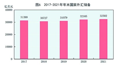 年末國(guó)家外匯儲(chǔ)備32502億美元,比上年末增加336億美元。全年人民幣平均匯率為1美元兌6.4515元人民幣,比上年升值6.9%。(見圖6)