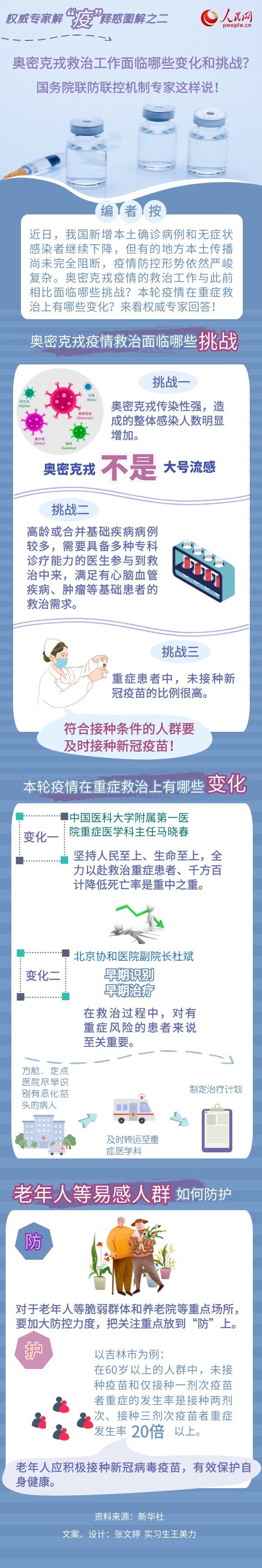 編者按:新冠肺炎疫情發(fā)生以來,我國堅(jiān)持人民至上、生命至上,堅(jiān)持外防輸入、內(nèi)防反彈,堅(jiān)持動(dòng)態(tài)清零,因時(shí)因勢(shì)不斷調(diào)整防控措施。近日,國務(wù)院聯(lián)防聯(lián)控機(jī)制綜合組專家就當(dāng)前我國為什么不能放松疫情防控、奧密克戎疫情的救治工作與此前相比有哪些新變化和新挑戰(zhàn)等一系列與疫情防控有關(guān)的最新問題進(jìn)行權(quán)威解答。今日起,人民網(wǎng)推出系列圖解,為網(wǎng)友解“疫”釋惑。