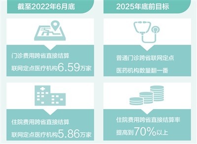 《通知》明確提出,2025年底前,住院費(fèi)用跨省直接結(jié)算率提高到70%以上,普通門診跨省聯(lián)網(wǎng)定點(diǎn)醫(yī)藥機(jī)構(gòu)數(shù)量實(shí)現(xiàn)翻一番,群眾需求大、各地普遍開展的門診慢特病相關(guān)治療費(fèi)用逐步納入跨省直接結(jié)算范圍,異地就醫(yī)備案規(guī)范便捷,基本實(shí)現(xiàn)醫(yī)保報銷線上線下都能跨省通辦。