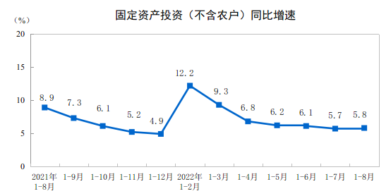 2022年1—8月份全國固定資產(chǎn)投資增長5.8%