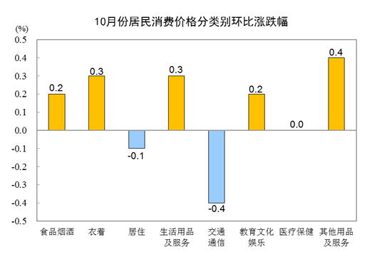 國家統(tǒng)計局:10月份居民消費價格同比上漲2.1%,環(huán)比上漲0.1%