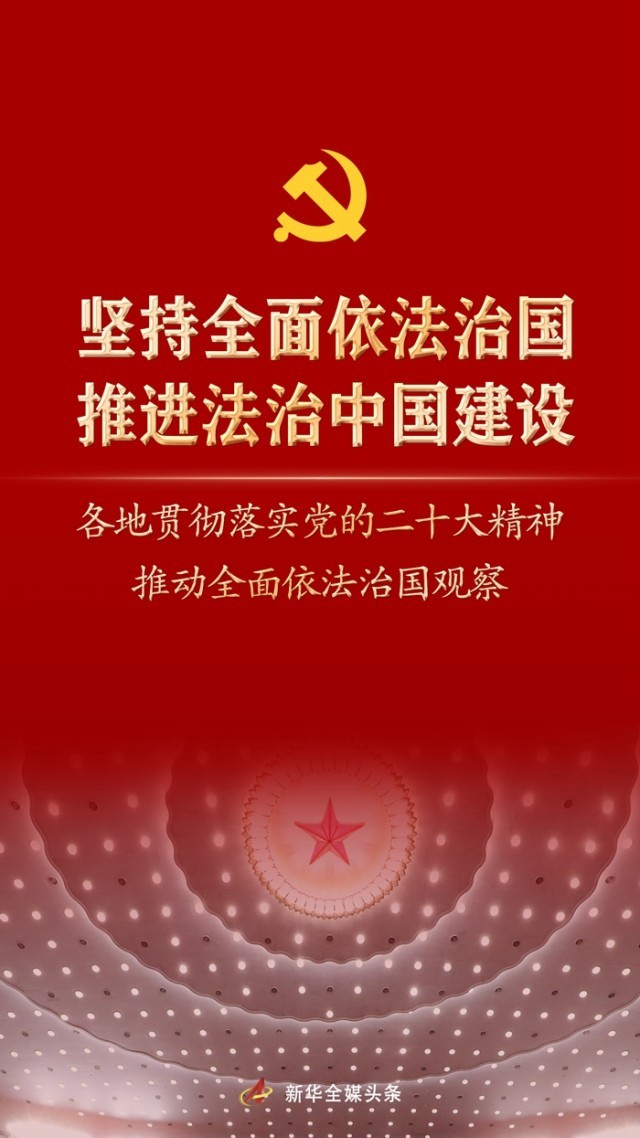 連日來,新華社記者在一線采訪看到,各地在堅持全面依法治國,推進(jìn)法治中國建設(shè)的實(shí)際行動中,貫徹落實(shí)黨的二十大精神,全面推進(jìn)國家各方面工作法治化。