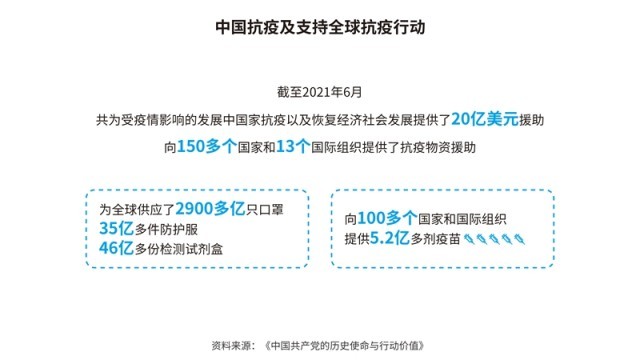 中國(guó)先后批準(zhǔn)或加入了30余項(xiàng)國(guó)際人權(quán)文書(shū),其中包括6項(xiàng)聯(lián)合國(guó)核心人權(quán)條約;累計(jì)共向166個(gè)國(guó)家和國(guó)際組織提供了援助,派遣60多萬(wàn)名援助人員;多次無(wú)條件免除重債窮國(guó)和最不發(fā)達(dá)國(guó)家對(duì)華到期政府無(wú)息貸款債務(wù)。在聯(lián)合國(guó)維和行動(dòng)中,中國(guó)是安理會(huì)常任理事國(guó)第一大出兵國(guó),30多年來(lái)累計(jì)派出維和官兵5萬(wàn)余人次。共建“一帶一路”已成為助力各國(guó)發(fā)展、深受世界歡迎的新興國(guó)際公共產(chǎn)品,據(jù)世界銀行研究報(bào)告,到2030年,將使相關(guān)國(guó)家760萬(wàn)人擺脫極端貧困、3200萬(wàn)人擺脫中度貧困。新冠肺炎疫情暴發(fā)以來(lái),中國(guó)努力促進(jìn)新冠疫苗在全球范圍內(nèi)公平合理分配,成為全球?qū)ν馓峁┮呙鐢?shù)量最多的國(guó)家。