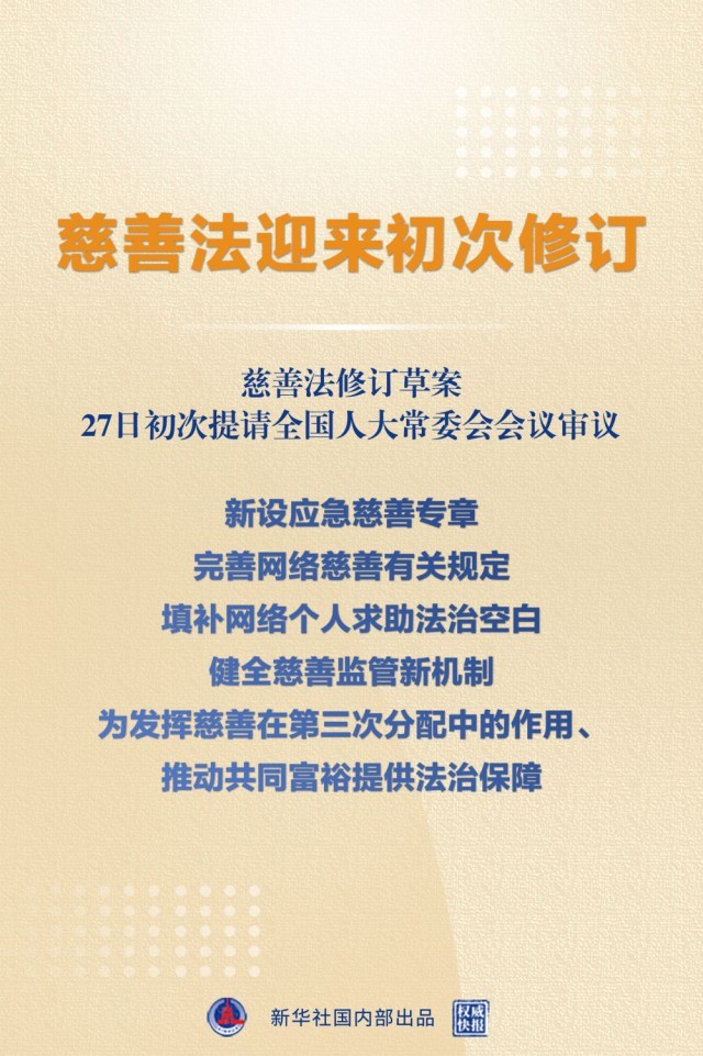 - 慈善法修訂草案提請審議:新設(shè)應(yīng)急慈善專章 完善網(wǎng)絡(luò)慈善規(guī)定 填補(bǔ)網(wǎng)絡(luò)個人求助法治空白