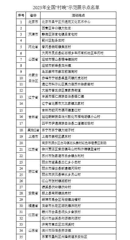 中國經(jīng)濟網(wǎng)北京1月10日訊(記者 魏金金)如今,“村晚”已經(jīng)成為豐富基層群眾節(jié)日文化生活、傳承年俗文化和培育鄉(xiāng)村文明的新風尚。記者從文化和旅游部官網(wǎng)獲悉,2023年全國“村晚”示范展示點名單已出爐,北京市昌平區(qū)天通苑文化藝術中心等74個活動地點入選。