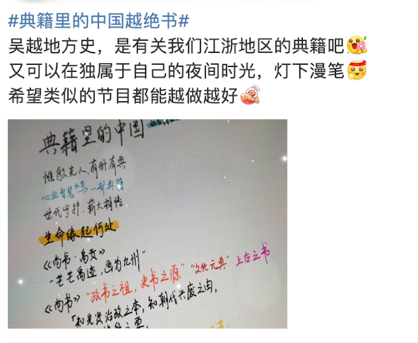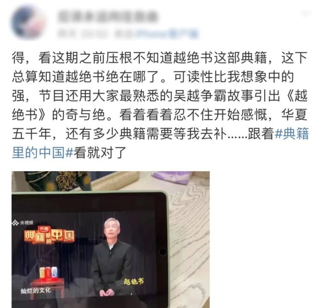 大學時讀的這部書,令總臺臺長記憶深刻。在提議策劃推出《典籍里的中國》第二季時,臺長建議關(guān)注《越絕書》這個選題。古越人絕地求生、奮斗不息的精神,值得今人傳承弘揚!
