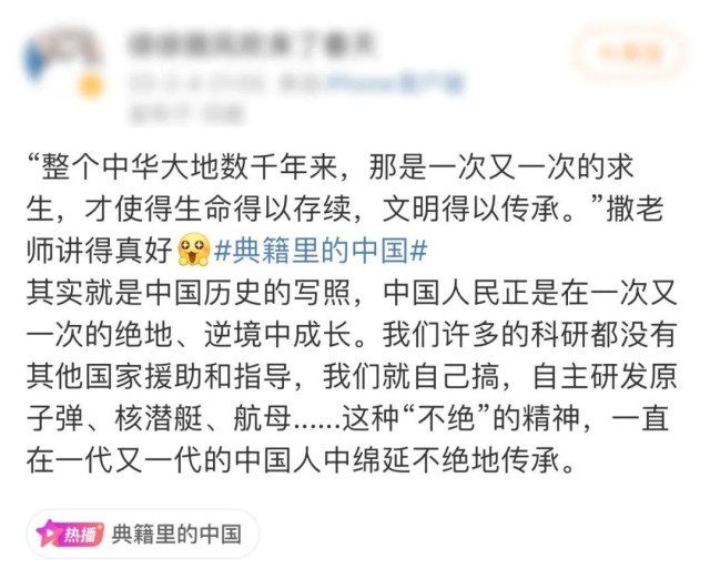 節(jié)目成功傳遞了杰出典籍蘊含的精神內(nèi)核和文化靈魂,激發(fā)了觀眾內(nèi)心對中華民族優(yōu)秀傳統(tǒng)文化的認同。