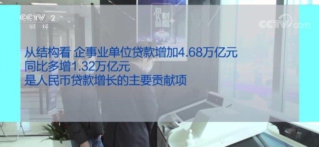 從結(jié)構(gòu)看,企(事)業(yè)單位貸款增加4.68萬(wàn)億元,同比多增1.32萬(wàn)億元,是人民幣貸款增長(zhǎng)的主要貢獻(xiàn)項(xiàng)。