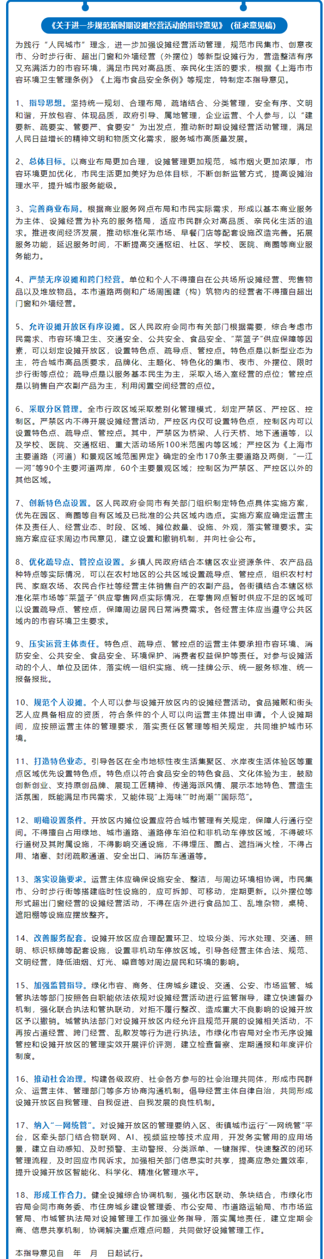 上海將允許在劃定的設(shè)攤開放區(qū)內(nèi)有序設(shè)攤