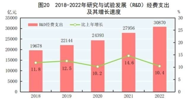 中國網(wǎng)財經(jīng)2月28日訊 國家統(tǒng)計局28日發(fā)布的2022年國民經(jīng)濟(jì)和社會發(fā)展統(tǒng)計公報顯示,2022年,全年研究與試驗發(fā)展(R&D)經(jīng)費(fèi)支出30870億元,比上年增長10.4%,與國內(nèi)生產(chǎn)總值之比為2.55%,其中基礎(chǔ)研究經(jīng)費(fèi)1951億元。國家自然科學(xué)基金共資助5.19萬個項目。截至年末,正在運(yùn)行的國家重點實驗室533個,納入新序列管理的國家工程研究中心191個,國家企業(yè)技術(shù)中心1601家,大眾創(chuàng)業(yè)萬眾創(chuàng)新示范基地212家。國家科技成果轉(zhuǎn)化引導(dǎo)基金累計設(shè)立36支子基金,資金總規(guī)模624億元。國家級科技企業(yè)孵化器1425家,國家備案眾創(chuàng)空間2441家。