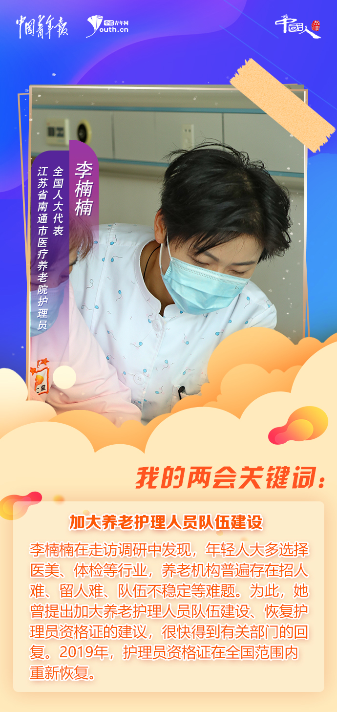 同樣是連任的全國人大代表,李楠楠投身養(yǎng)老護(hù)理行業(yè)已有10年。此前5年的履職經(jīng)歷,讓她深刻感受到一份建議能帶來的改變。