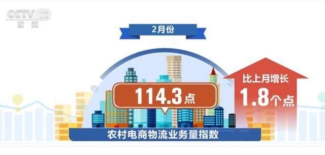 另外,農(nóng)村電商物流業(yè)務量連續(xù)增長。2月份,農(nóng)村電商物流業(yè)務量指數(shù)為114.3點,比上月增長1.8個點。