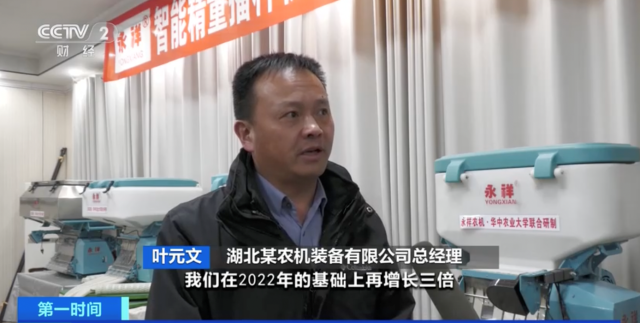 湖北某農(nóng)機裝備有限公司總經(jīng)理 葉元文:預計2023年,我們在2022年的基礎(chǔ)上再增長三倍,完成1.3億元的銷售額。