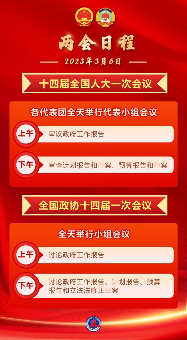 3月6日兩會(huì)日程 新華社發(fā)