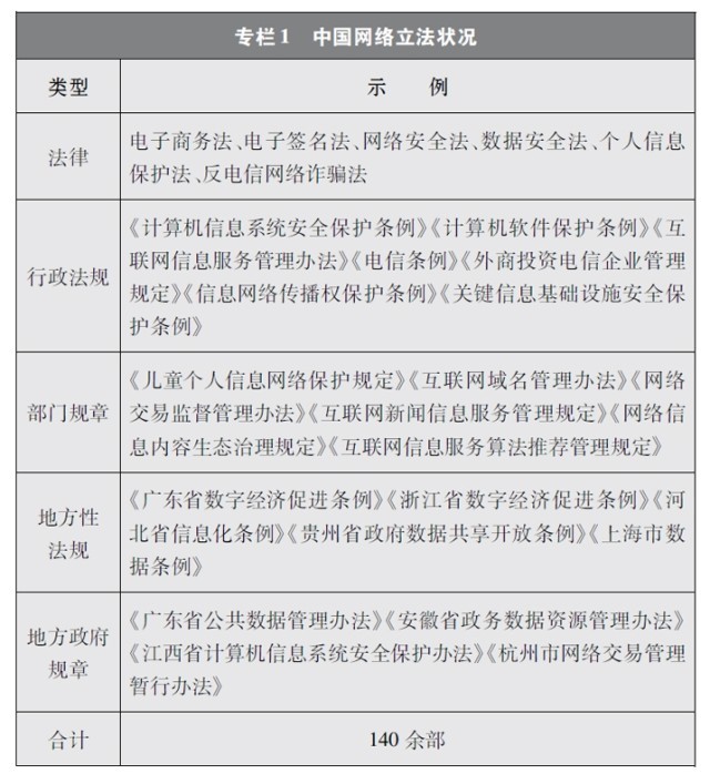 中國網(wǎng)絡立法隨著互聯(lián)網(wǎng)發(fā)展經(jīng)歷了從無到有、從少到多、由點到面、由面到體的發(fā)展過程。第一階段從1994年至1999年,是接入互聯(lián)網(wǎng)階段。上網(wǎng)用戶和設備數(shù)量穩(wěn)步增加。這一階段網(wǎng)絡立法主要聚焦于網(wǎng)絡基礎設施安全,即計算機系統(tǒng)安全和聯(lián)網(wǎng)安全。第二階段從2000年至2011年,是PC互聯(lián)網(wǎng)階段。隨著計算機數(shù)量逐步增加、上網(wǎng)資費逐步降低,用戶上網(wǎng)日益普遍,網(wǎng)絡信息服務迅猛發(fā)展。這一階段網(wǎng)絡立法轉(zhuǎn)向側(cè)重網(wǎng)絡服務管理和內(nèi)容管理。第三階段從2012年至今,是移動互聯(lián)網(wǎng)階段。這一階段網(wǎng)絡立法逐步趨向全面涵蓋網(wǎng)絡信息服務、信息化發(fā)展、網(wǎng)絡安全保護等在內(nèi)的網(wǎng)絡綜合治理。在這一進程中,中國制定出臺網(wǎng)絡領域立法140余部,基本形成了以憲法為根本,以法律、行政法規(guī)、部門規(guī)章和地方性法規(guī)、地方政府規(guī)章為依托,以傳統(tǒng)立法為基礎,以網(wǎng)絡內(nèi)容建設與管理、網(wǎng)絡安全和信息化等網(wǎng)絡專門立法為主干的網(wǎng)絡法律體系,為網(wǎng)絡強國建設提供了堅實的制度保障。