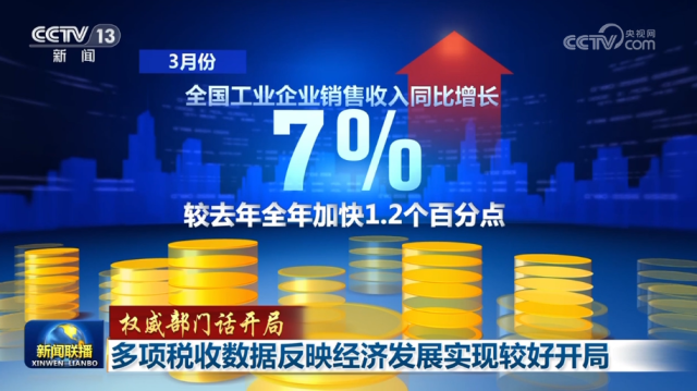 央視網(wǎng)消息(新聞聯(lián)播):在國新辦今天(4月6日)舉行的“權威部門話開局”系列主題新聞發(fā)布會上,國家稅務總局負責人表示,多項稅收數(shù)據(jù)反映出我國經(jīng)濟發(fā)展實現(xiàn)了較好開局。