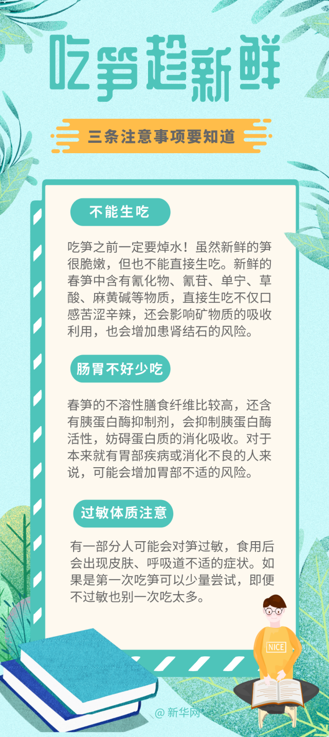 春季吃筍正當(dāng)時(shí),但春筍吃不對(duì)也會(huì)帶來健康風(fēng)險(xiǎn)。近日“男子貪吃春筍后嘔血又暈厥”的新聞就給人們提了個(gè)醒,那吃筍有哪些注意事項(xiàng)呢?