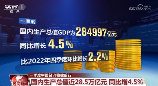 一季度,國內(nèi)生產(chǎn)總值(GDP)為284997億元,同比增長4.5%,比2022年四季度環(huán)比增長2.2%。在疫情防控取得重大決定性勝利后,中國經(jīng)濟(jì)逐步回升走穩(wěn),再次彰顯出大國經(jīng)濟(jì)的韌性與活力。