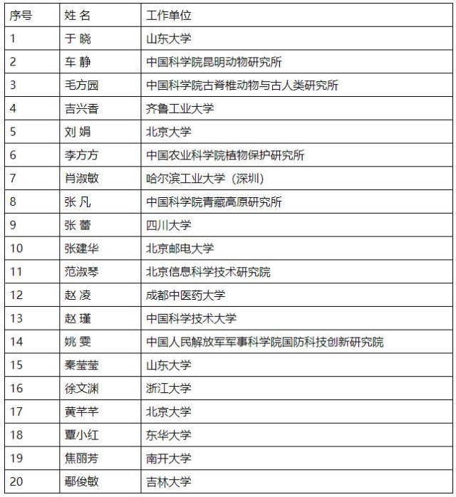 第十八屆中國青年女科學(xué)家獎揭曉 20人5支團隊獲獎