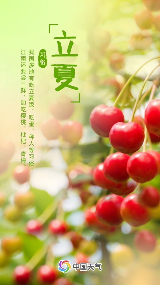 立夏還是品嘗美食的好時(shí)節(jié),許多家庭會將赤豆、黃豆、黑豆、豌豆、綠豆做成“立夏飯”,寓意“五谷豐登”。江南有“嘗三鮮”的習(xí)俗,即品嘗甜蜜櫻桃、爽口青梅以及清甜枇杷。