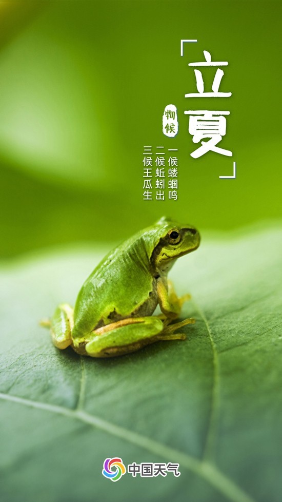 立夏一候“螻蟈鳴”,也叫“蛙始鳴”,說的是這一時(shí)節(jié)青蛙逐漸開始活躍、聒噪起來;二候“蚯蚓出”,此時(shí)蚯蚓懶洋洋地開始翻松泥土了;三候“王瓜生”,這里的王瓜泛指藤蔓類植物,此時(shí)開始攀爬生長,綠意盎然。立夏時(shí)節(jié),萬物已褪去了春日的青嫩,開始日日攀長,至此萬物繁茂。