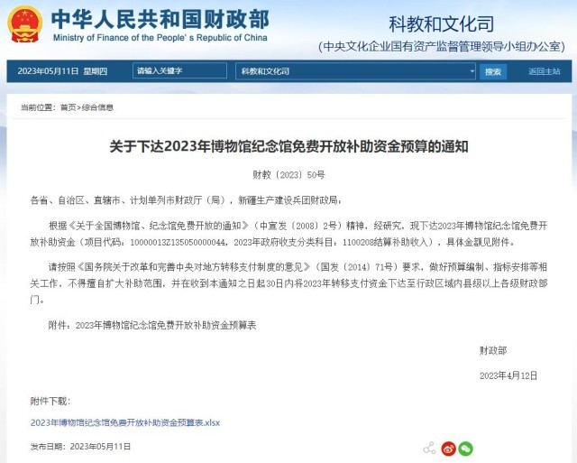 財(cái)政部:2023年博物館紀(jì)念館免費(fèi)開(kāi)放補(bǔ)助資金預(yù)算下達(dá)