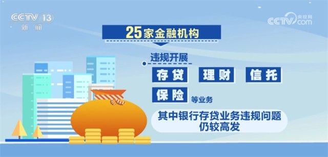 25家金融機(jī)構(gòu)違規(guī)開(kāi)展存貸、理財(cái)、信托、保險(xiǎn)等業(yè)務(wù),其中銀行存貸業(yè)務(wù)違規(guī)問(wèn)題仍較高發(fā)。