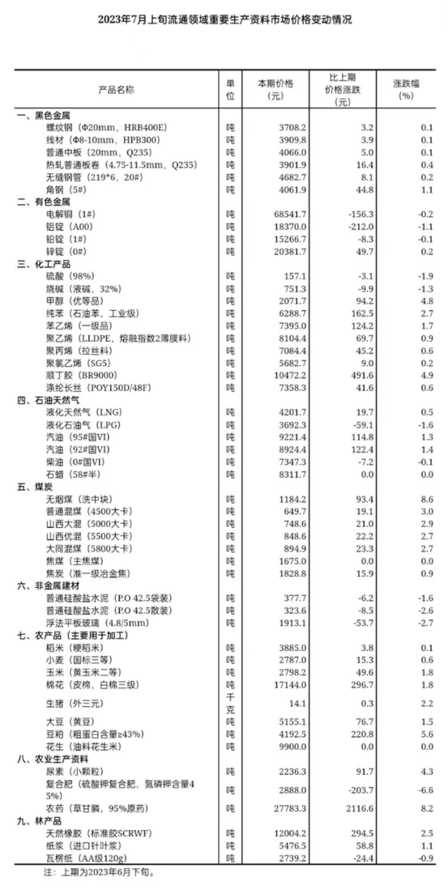 國家統(tǒng)計局:7月上旬流通領域重要生產(chǎn)資料市場35種產(chǎn)品價格上漲