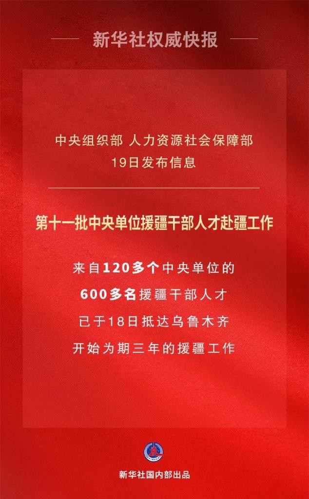 7月18日,中央組織部、人力資源社會(huì)保障部有關(guān)負(fù)責(zé)同志帶隊(duì),送第十一批中央單位援疆干部人才抵達(dá)烏魯木齊,開(kāi)始了為期三年的援疆工作。