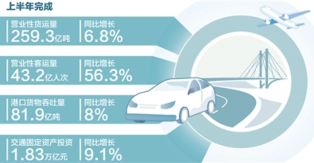 完成營業(yè)性貨運量259.3億噸,同比增長6.8%;完成交通固定資產(chǎn)投資1.83萬億元,繼續(xù)保持高位運行……7月31日,交通運輸部發(fā)布數(shù)據(jù)顯示,上半年,交通運輸經(jīng)濟(jì)運行穩(wěn)中向好,既有量的合理增長,也有質(zhì)的有效提升。