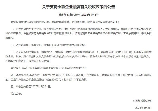 央視網消息:據財政部,為繼續(xù)加大對小微企業(yè)的支持力度,推動緩解融資難、融資貴問題,現將有關稅收政策公告如下: