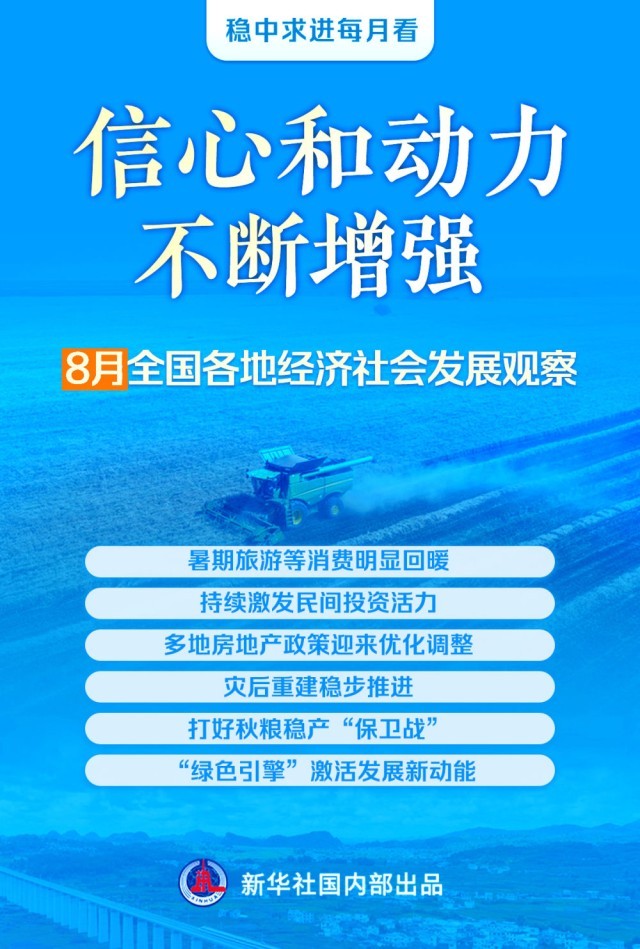 穩(wěn)中求進(jìn)每月看|信心和動(dòng)力不斷增強(qiáng)——8月全國(guó)各地經(jīng)濟(jì)社會(huì)發(fā)展觀察