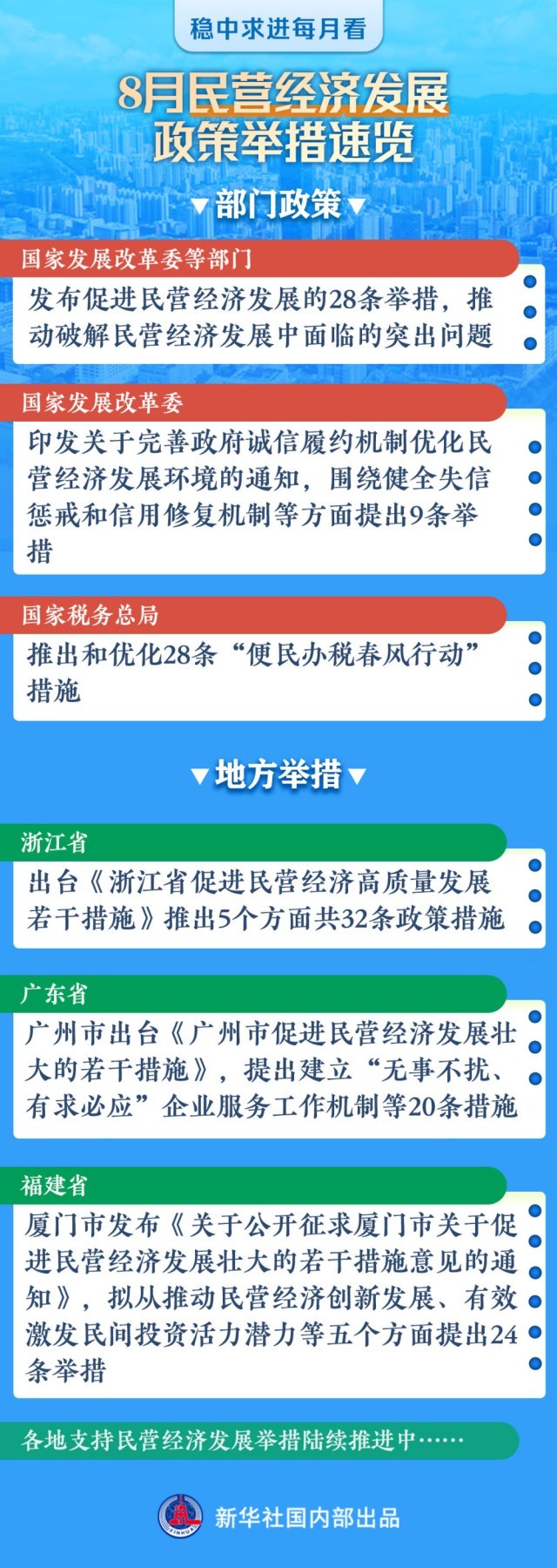 8月份以來,針對(duì)民營(yíng)企業(yè)面臨的痛點(diǎn)、堵點(diǎn)、難點(diǎn),從中央到地方密集推出系列政策舉措,旨在激發(fā)民間投資活力,鼓勵(lì)企業(yè)敢闖、敢投、敢擔(dān)風(fēng)險(xiǎn)。