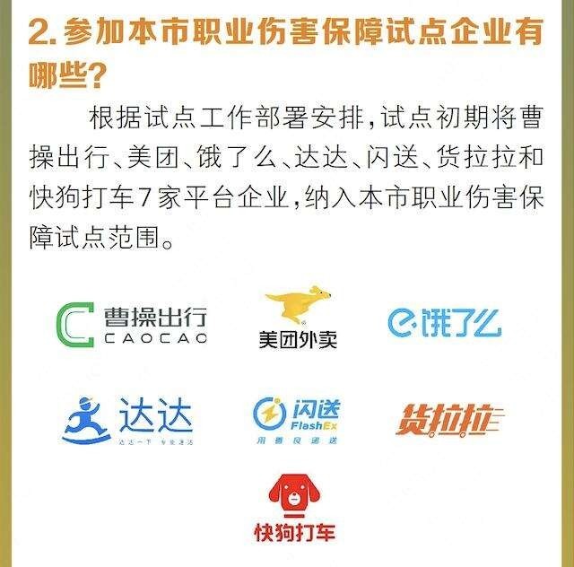 據(jù)了解,“新型社?!痹圏c從去年7月1日啟動實施,第一批試點在曹操出行、美團(tuán)、餓了么、達(dá)達(dá)、閃送、貨拉拉、快狗打車7家平臺企業(yè),在全國7個省市開展。