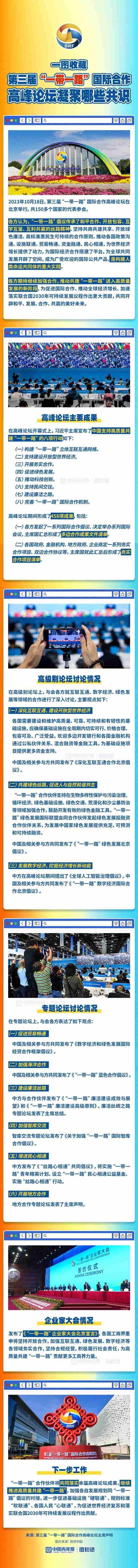 2023年10月18日,第三屆“一帶一路”國(guó)際合作高峰論壇在北京舉行,共150多個(gè)國(guó)家的代表參會(huì)。這次論壇上凝聚了與會(huì)各方哪些共識(shí)?一圖收藏