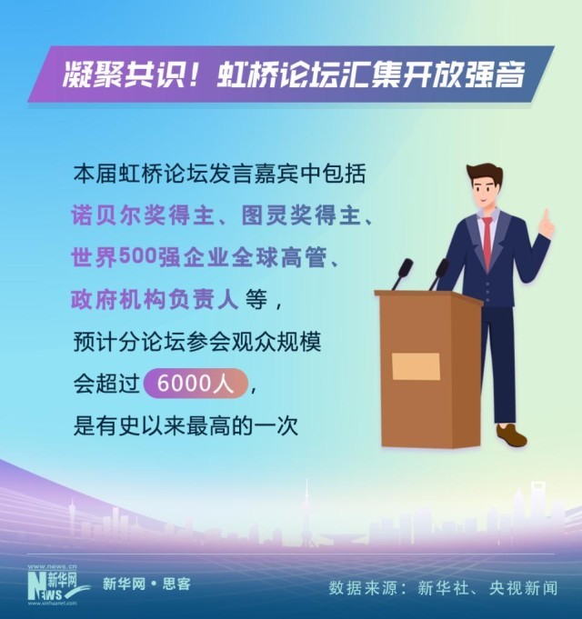 虹橋國際經濟論壇是中國國際進口博覽會的重要組成部分。隨著進博會的“朋友圈”越來越大,虹橋論壇的影響力也不斷提升。今年的論壇以“攜手促發(fā)展,開放贏未來”為主題,發(fā)言嘉賓中包括了諾貝爾獎得主、圖靈獎得主、世界500強企業(yè)全球高管、政府機構負責人等等,預計分論壇參會觀眾規(guī)模也會超過6000人,是有史以來最高的一次。