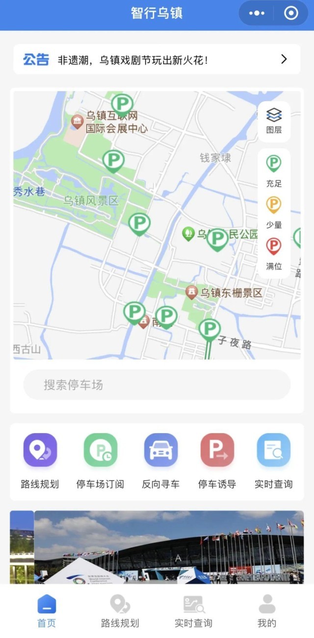 由點(diǎn)及面,烏鎮(zhèn)整合景區(qū)及鎮(zhèn)區(qū)7000余個停車位信息及公交、公共自行車、公共電單車等公共交通資源,定制了一款“智行烏鎮(zhèn)”小程序,已在微信及支付寶端上線試用,能“反向?qū)ぼ嚒薄ⅰ巴\囉嗛啞钡?,為暢行烏?zhèn)“最后100米”的困擾找到了最優(yōu)解。