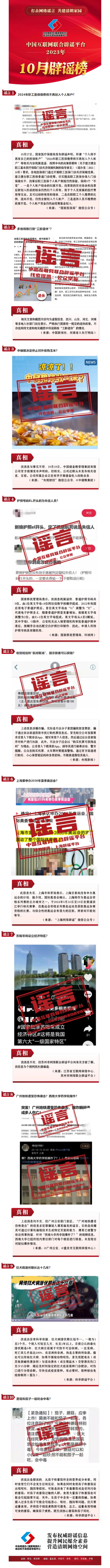 打擊網(wǎng)絡(luò)謠言 共建清朗家園 中國互聯(lián)網(wǎng)聯(lián)合辟謠平臺2023年10月辟謠榜