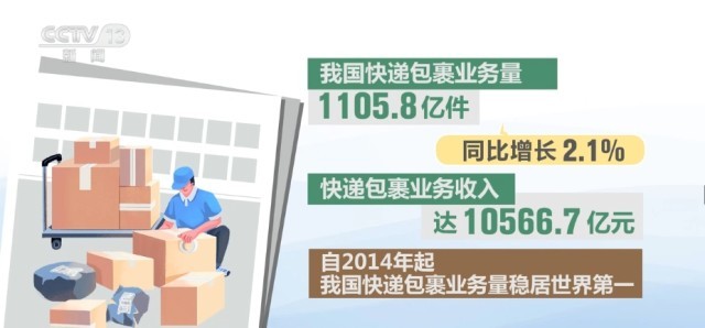 我國快遞包裹業(yè)務(wù)量同比增長2.1% 穩(wěn)居世界第一