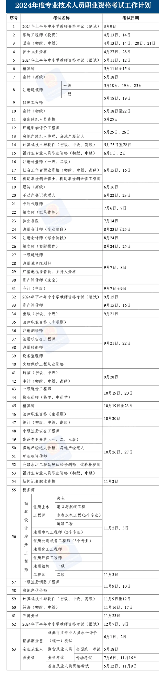 2024年專業(yè)技術人員職業(yè)資格考試計劃發(fā)布!附時間表