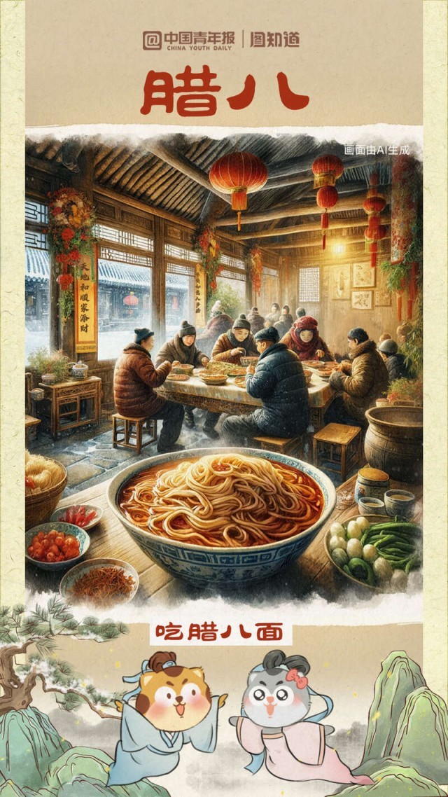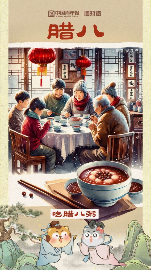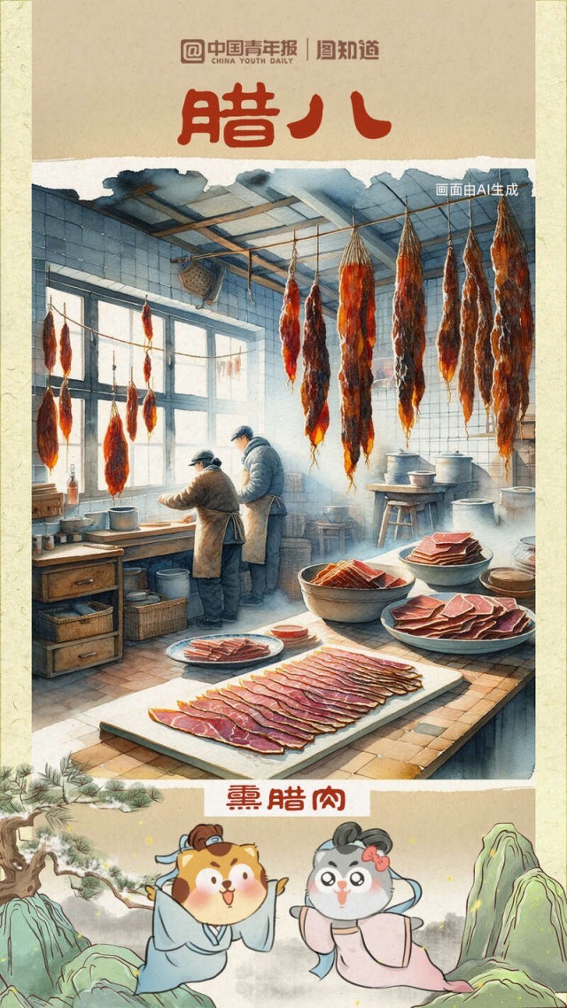 又是一年臘八時,道一聲萬事“粥”全?!坝煤摇⑺勺?、乳蕈、柿、栗之類為粥,謂之‘臘八粥’。”這是南宋周密筆下的臘八粥。你的“臘八”餐桌想擺上哪些地方的美食?①湖南湖北的熏臘肉②北方地區(qū)的臘八蒜、臘八醋③陜西關(guān)中地區(qū)臘八面……過了臘八就是年,幾幅臘八美食與你一起迎接小年。