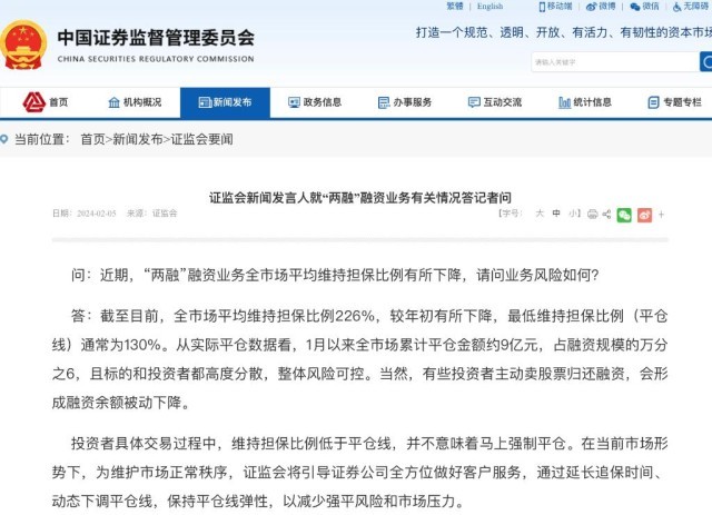 證監(jiān)會(huì)新聞發(fā)言人2月5日就“兩融”融資業(yè)務(wù)有關(guān)情況答記者問。