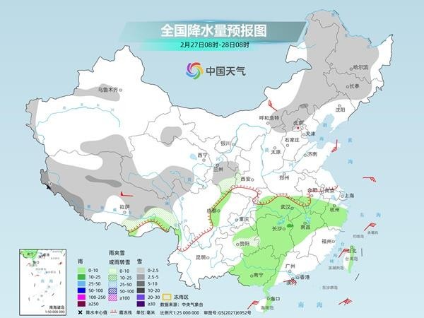 氣象部門提醒,南方大部陰雨頻繁的天氣將延續(xù)至3月初,其中,后天至3月1日,降水又將增強(qiáng),需關(guān)注路面濕滑、能見度下降等對春運出行等方面的不利影響。華北、東北部分地區(qū)今明天將有降雪,公眾雪天外出請留意交通安全。