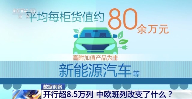 全程時刻表中歐班列速度最快,貨值最高。它的貨品以新能源汽車等高附加值產品為主。平均每柜貨值約80余萬元,比普通班列高出13%。去年中歐班列承載的貿易額超過750億美元,比前三年的平均值增長了50%。