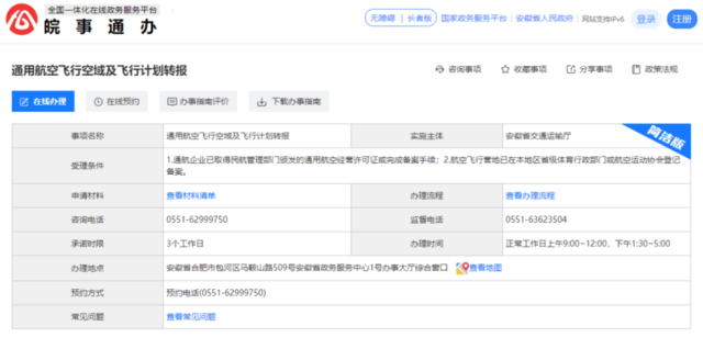皖事通辦——通用航空飛行空域及飛行計(jì)劃轉(zhuǎn)報