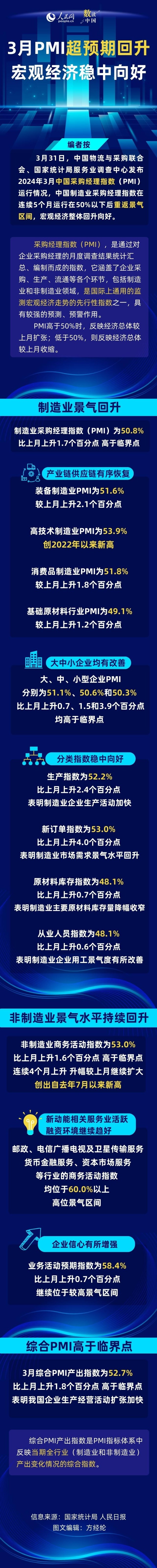 數(shù)讀中國|3月PMI超預(yù)期回升 宏觀經(jīng)濟(jì)穩(wěn)中向好