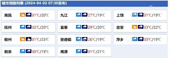江西各城市天氣預(yù)報(bào)。(來源:中國天氣網(wǎng))