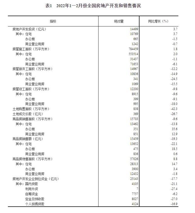 1—2月份,商品房銷售面積15703萬平方米,同比下降9.6%,其中,住宅銷售面積下降13.8%;商品房銷售額15459億元,下降19.3%,其中,住宅銷售額下降22.1%。
