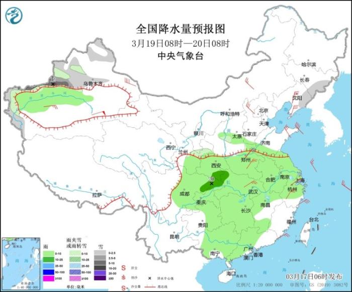3月19日8時至20日8時,吉林東部、遼寧東部、新疆西北部和南疆西部山區(qū)等地部分地區(qū)有小到中雪,其中,新疆西北部局地有大到暴雪。西北地區(qū)東南部、華北南部、黃淮、江淮、江漢、江南北部和西部、西南地區(qū)東部、華南大部以及新疆南疆盆地北部等地有小雨,局地有中雨(10~20毫米)。內(nèi)蒙古中部、遼寧、河北北部、山東半島、河南中東部、湖北東部、浙江、新疆南疆盆地等地部分地區(qū)有4~6級風,陣風7~8級。